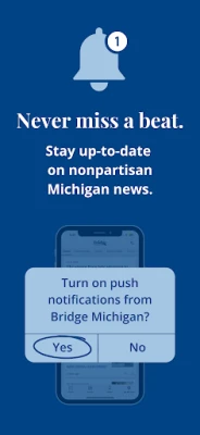 Non perdere mai un aggiornamento cruciale con il sistema di notifiche push di Bridge Michigan. Abilitando gli avvisi, sarai sempre un passo avanti sulle notizie di punta del Michigan, con aggiornamenti tempestivi su temi vitali come Politica, Ambiente, Salute, Economia ed Educazione. Sarai tra i primi a ricevere il nostro giornalismo d'eccellenza, le comunicazioni sugli eventi online esclusivi e le notizie dell'ultima ora. Con Bridge Michigan, le informazioni più importanti non ti faranno mai aspettare.
