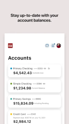 Con pochi semplici gesti, puoi visualizzare in tempo reale i saldi di tutti i tuoi conti e ripercorrere la cronologia dettagliata delle tue transazioni, assicurandoti sempre la massima trasparenza. Non solo: hai la possibilità di depositare assegni con la massima facilità, direttamente dal tuo dispositivo mobile, risparmiando tempo prezioso. Inoltre, per una maggiore comodità, puoi controllare i saldi essenziali da smartphone, smartwatch o tablet, senza nemmeno la necessità di effettuare l'accesso, offrendoti una panoramica immediata delle tue finanze ovunque ti trovi.