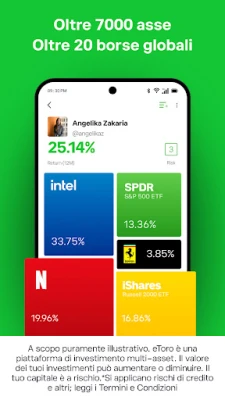 Per aiutarti a costruire il tuo portafoglio ideale e cogliere le migliori opportunità, eToro mette a tua disposizione strumenti potenti e analisi approfondite. Accedi a ricerche di mercato dettagliate, visualizza analisi tecniche con ProCharts, personalizza le tue watchlist e imposta avvisi sulla volatilità per essere sempre un passo avanti. Scopri il futuro degli investimenti con gli innovativi Smart Portfolio di eToro: portafogli tematici già pronti e gestiti, che impiegano algoritmi sofisticati per identificare gli asset più promettenti, puntando a ottimizzare i rendimenti e a minimizzare i rischi nel lungo periodo. Si ricorda che il CopyTrading non è da intendersi come consulenza finanziaria. Il tuo capitale è a rischio e potresti subire perdite. Gli investimenti in criptovalute sono altamente volatili, non regolamentati in molte giurisdizioni UE e soggetti a tassazione. Altre commissioni possono essere applicate.
