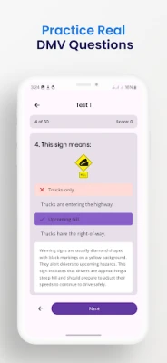 Prepara l'esame DMV del Michigan al meglio con Michigan DMV Test Practice. Esercitati con domande autentiche dal manuale 2024, coprendo regole stradali, segnali e leggi sulla guida. Ottieni feedback immediato, traccia la cronologia e punta a superare l'esame al primo tentativo.