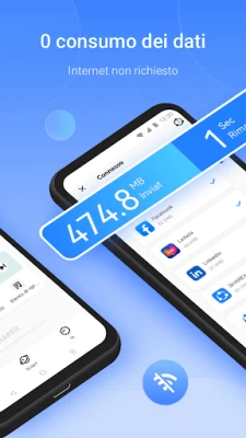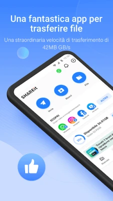 Scopri SHAREit, la soluzione definitiva per lo scambio di dati che ha conquistato la fiducia di oltre 2 miliardi di utenti globali. Progettata per una trasmissione ultra-veloce, SHAREit ti permette di inviare e ricevere ogni tipo di file – dalle applicazioni ai giochi, video, foto, musica e documenti – con una velocità fino a 200 volte superiore al Bluetooth, tutto senza consumare i tuoi dati mobili. La sicurezza e la privacy dei tuoi contenuti sono la nostra priorità, garantendo trasferimenti protetti su ogni piattaforma e la massima tranquillità.
